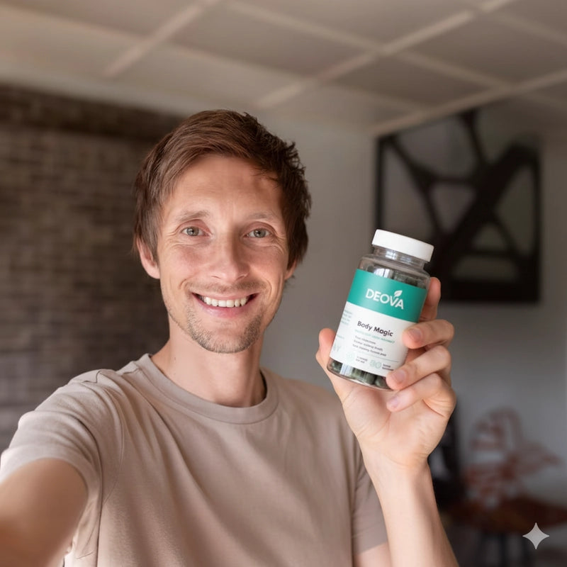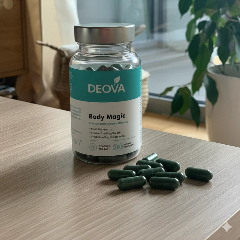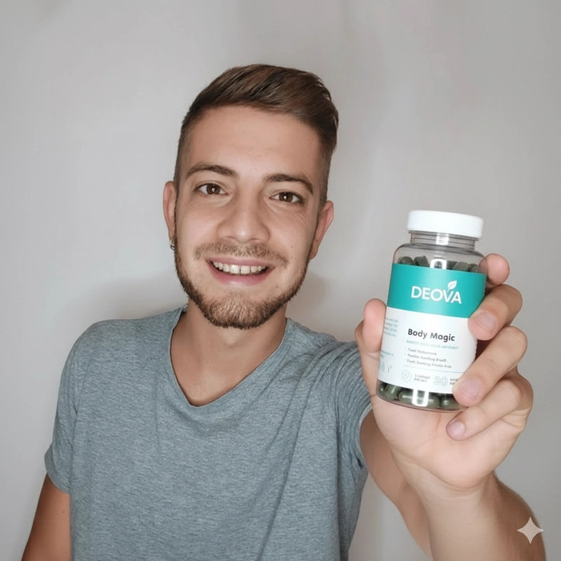 ¿Cansado de preocuparte por los olores y de reaplicar desodorante? DEOVA es la solución natural que buscas. Una cápsula diaria para la frescura de todo el cuerpo: axilas, áreas íntimas y aliento. Siente la libertad de una confianza que dura todo el día, desde dentro.